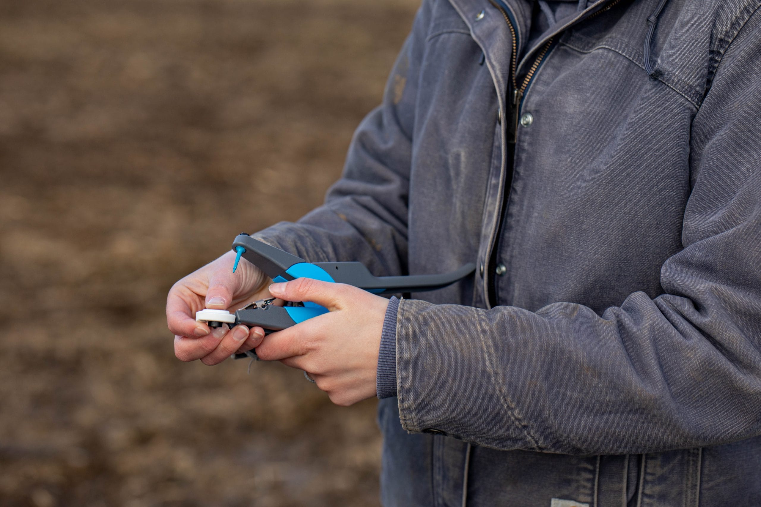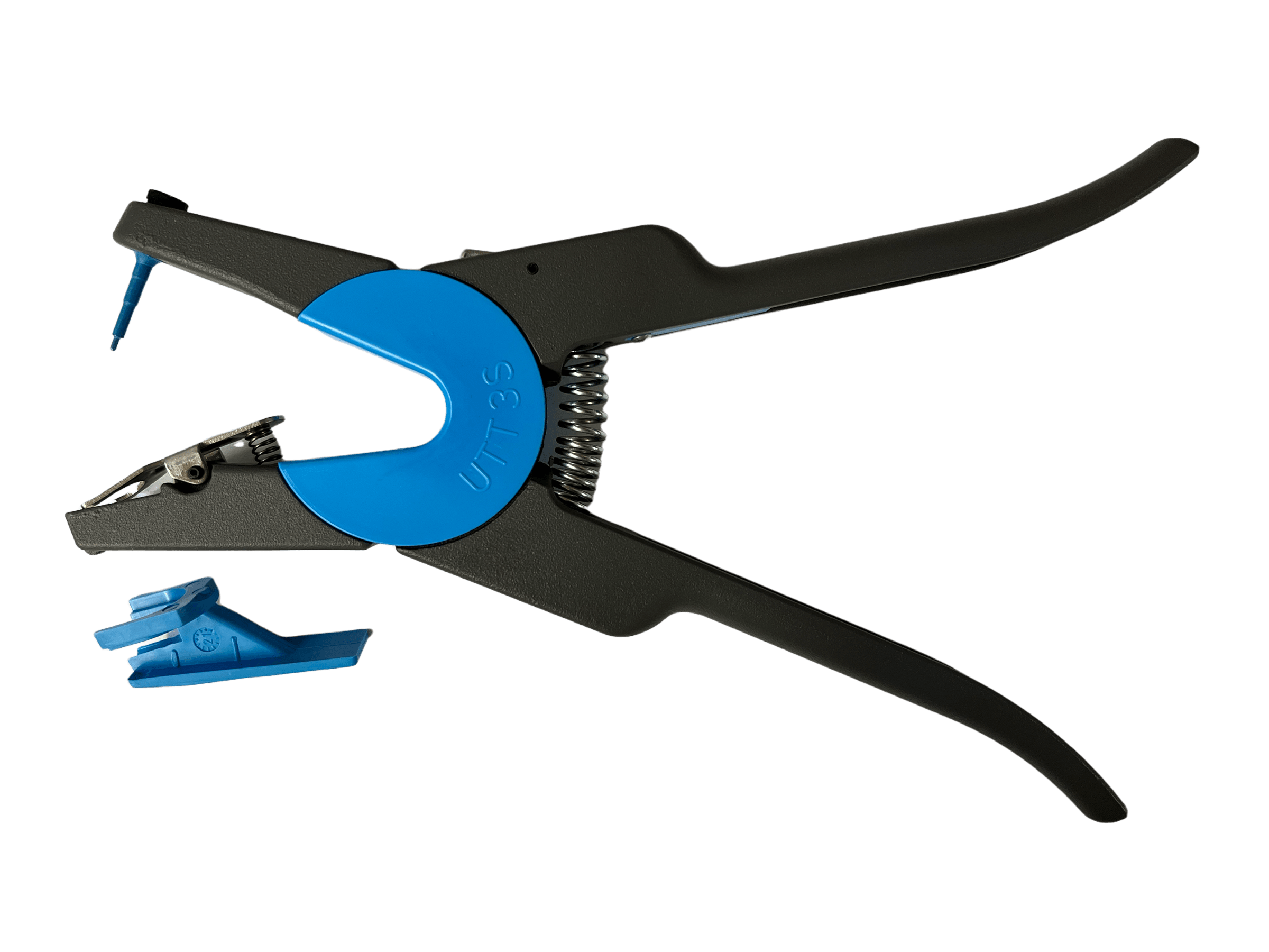 Ny, blå universal påsettingstang som passer både til vanlig visuelle merker og elektroniske merker – uten å bytte spiss. Denne tangen har litt mindre grep, slik at den skal være litt enklere å bruke dersom man har litt mindre hender.